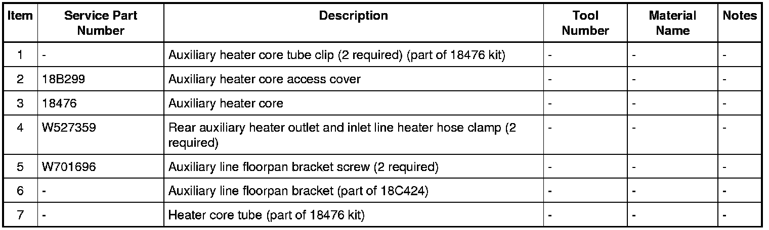 3. NOTICE: The auxiliary line floorpan bracket screws are loosened only to allow the auxiliary heater core tubes to be removed. Do not fully disassemble the floorpan bracket or separate the floorpan gasket from the bracket. If the floorpan gasket is separated from the bracket, or if it is damaged, a new gasket must be installed to avoid noise and water leak concerns.