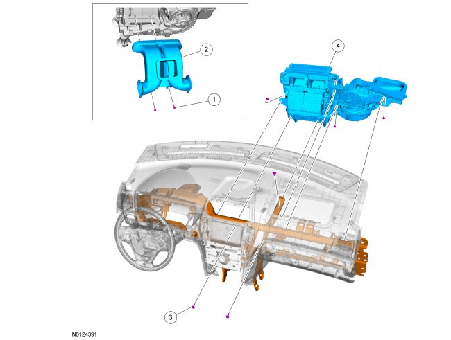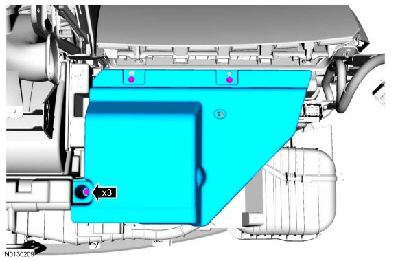 NOTE: If a heater core leak is suspected, the heater core must be pressure leak tested before it is removed from the vehicle. REFER to Heater Core Heater Core Component Test.