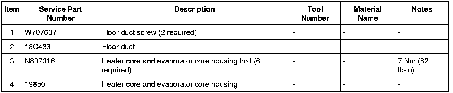 7. Remove the 6 heater core and evaporator core housing bolts.