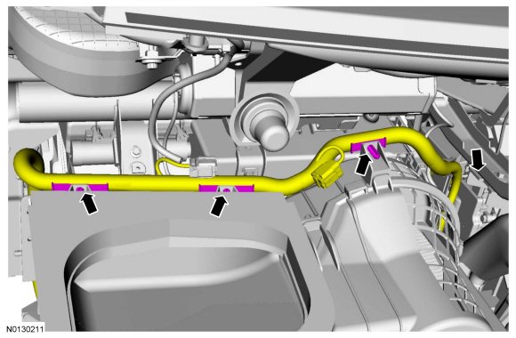 3. Connect the electrical connector and attach the 3 wire harness pin-type retainers.