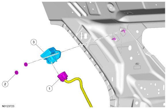 1. Remove the RH (Right Hand) C-pillar trim panel REFER to C-Pillar Trim Panel - With Inflatable Safety Belts C-Pillar Trim Panel - With Inflatable Safety Belts or REFER to C-Pillar Trim Panel - Without Inflatable Safety Belts C-Pillar Trim Panel - Without Inflatable Safety Belts.