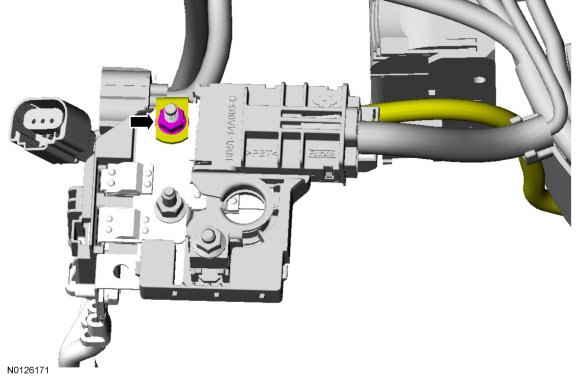 21. Remove the PSCM (Power Steering Control Module) capacitor bolt.