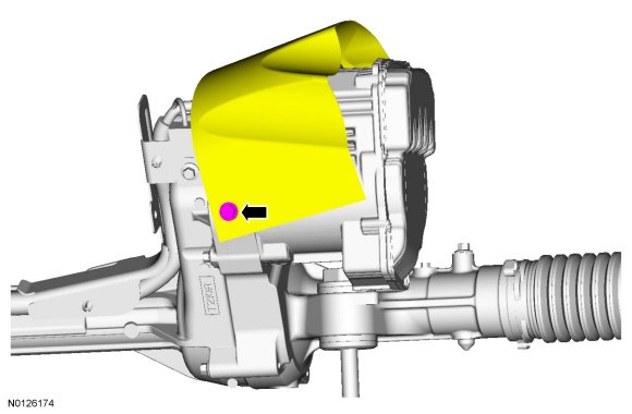 22. Remove the flap heat shield bolt and position the flap heat shield to access the PSCM (Power Steering Control Module) electrical connectors.