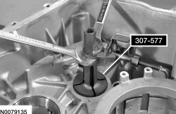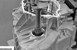 1. If the transaxle case side transfer shaft bearing cup is damaged, install 307-577 on the bearing cup.