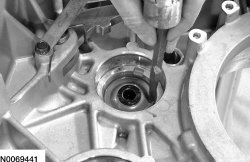6. Using a suitable tool, remove the halfshaft seal from the transaxle case.