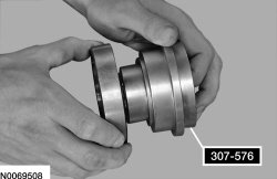 5. If removed, install a new differential bearing race on 307-576.
