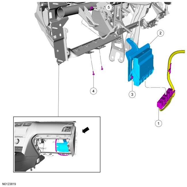 2. Remove the glove box. REFER to Instrument Panel - Exploded View Instrument Panel - Exploded View.