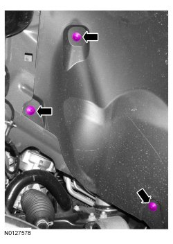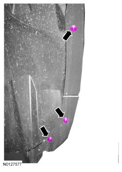 8. Remove the 3 upper fender splash shield pin-type retainers.