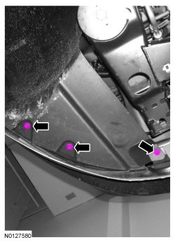 3. Remove the 3 rear fender splash shield pin-type retainers.