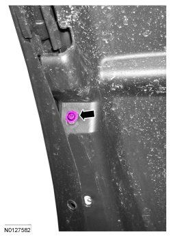 5. Position aside the fender moulding and install the fender splash shield screw.