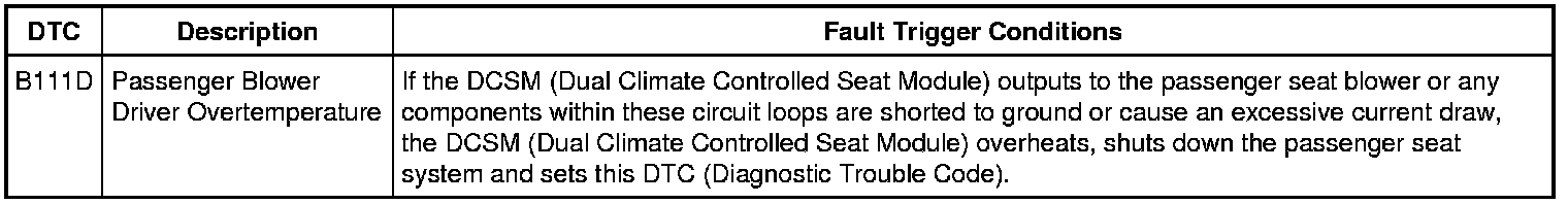 NOTICE: When taking measurements at DCSM (Dual Climate Controlled Seat Module) harness connectors, do not insert the electrical probes into the female connector pins. Inserting the probes into connector pins can cause intermittent or open electrical connections after reassembly resulting in DTCs (Diagnostic Trouble Codes) and system failure. Touching the tip of these connector pins is recommended instead.