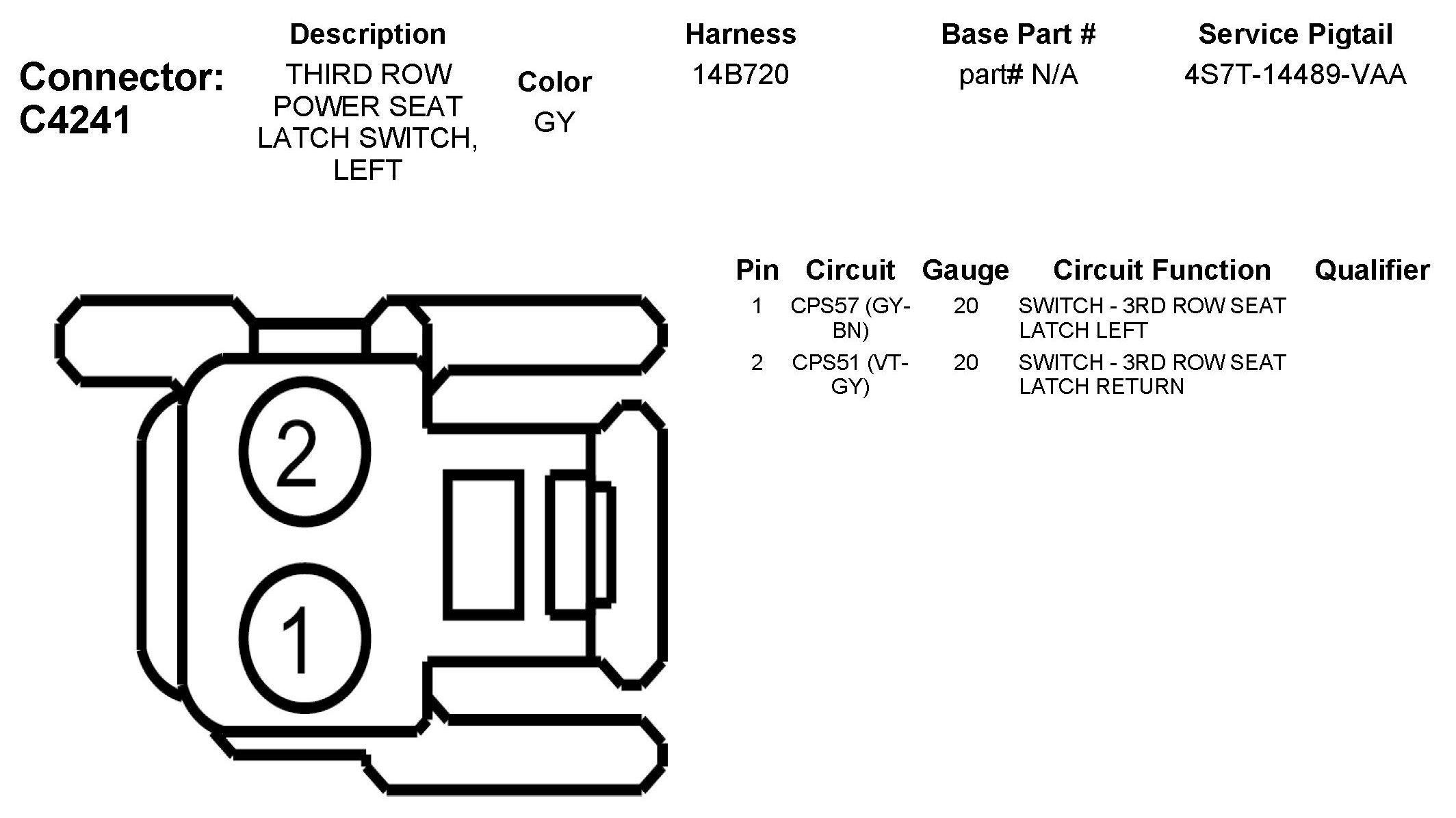 C4241 Third Row Power Seat Latch Switch, Left