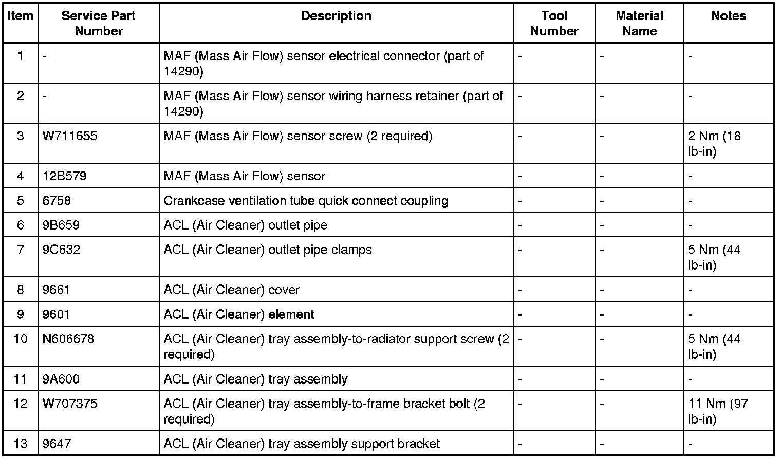 Intake Air System Components - Exploded View
