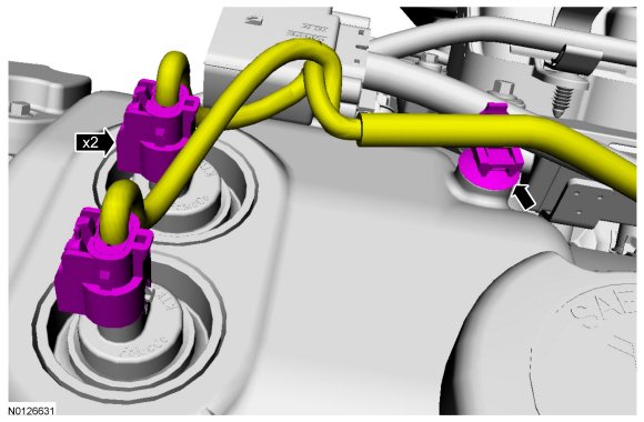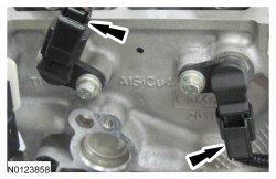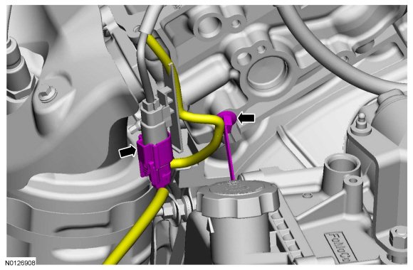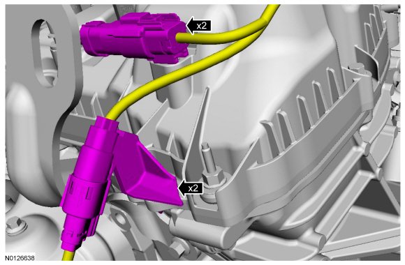 14. Disconnect the 2 VCT (Variable Camshaft Timing) oil control solenoid electrical connectors.