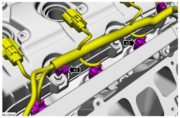 30. Disconnect the 3 fuel injector electrical connectors.