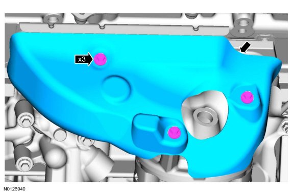 49. Remove the 3 bolts and the LH (Left Hand) exhaust heat shield.