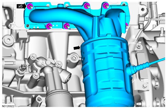 48. NOTE: If necessary, lubricate the LH (Left Hand) HO2S (Heated Oxygen Sensor) with penetrating and lock lubricant to assist in removal.