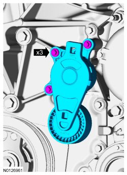 6. Remove the 3 bolts and the accessory drive belt tensioner.