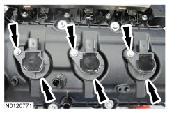 70. Remove the 3 bolts and the 3 LH (Left Hand)-coil-on-plugs.