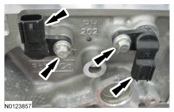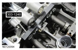 100. NOTE: When the 303-1248 is removed, valve spring pressure may rotate the LH (Left Hand) camshafts approximately 3 degrees to a neutral position.