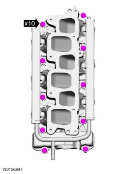 63. NOTICE: If the engine is repaired or replaced because of upper engine failure, typically including valve or piston damage, check the intake manifold for metal debris. If metal debris is found, install a new intake manifold. Failure to follow these instructions can result in engine damage.