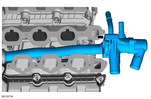 1. Remove and discard the intake manifold and thermostat housing gaskets.