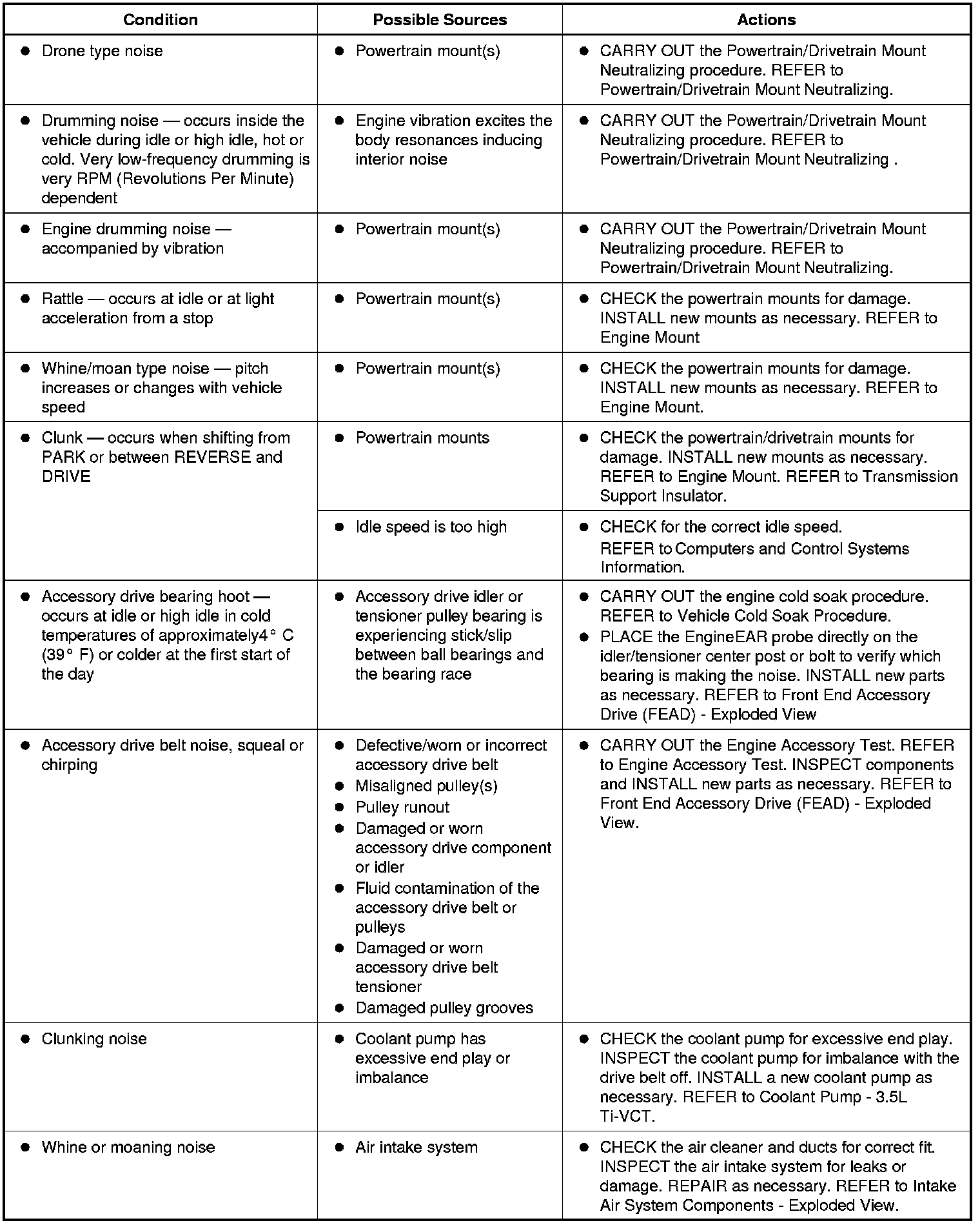 Symptom Chart: NVH
