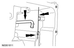 6. NOTICE: Make sure the park pawl actuator rod does not become disengaged from the park pawl and the abutment or the park pawl will not lock the output shaft and transaxle removal and disassembly will be required to reinstall the actuator rod.