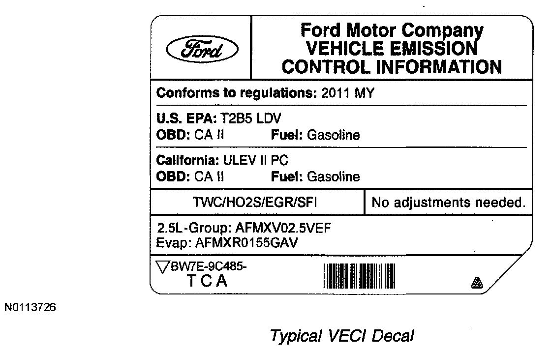 Each vehicle has a VECI decal containing emission control information that applies specifically to the vehicle and engine. The specifications on the decal are critical to repairing the emissions systems.