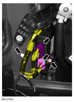 5. Disconnect the LTM (Liftgate/Trunk Module) electrical connectors and remove the pin-type retainer.