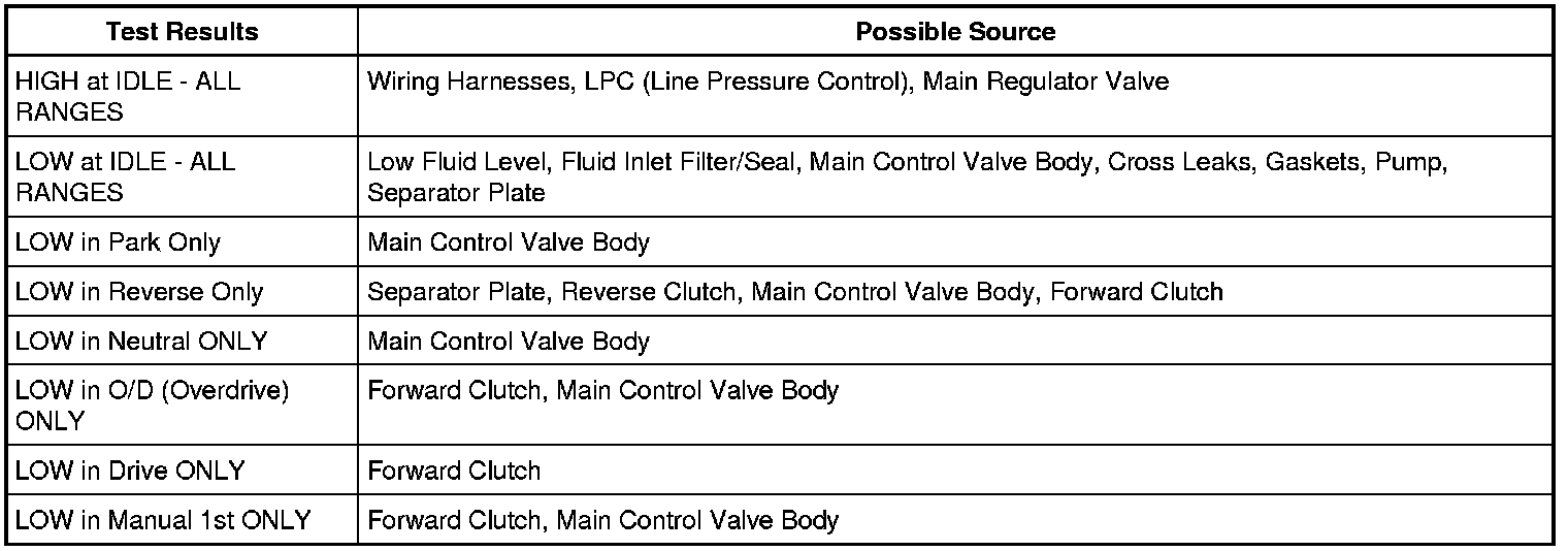 2. If the line pressure is not within specification, REFER to Diagnostic Routine F: P0748, P0960, P0962, P0963 Diagnostic Routine F to diagnose the LPC (Line Pressure Control) operation. If LPC (Line Pressure Control) operation is Ok, see the Line Pressure Diagnosis Chart for line pressure concern causes.