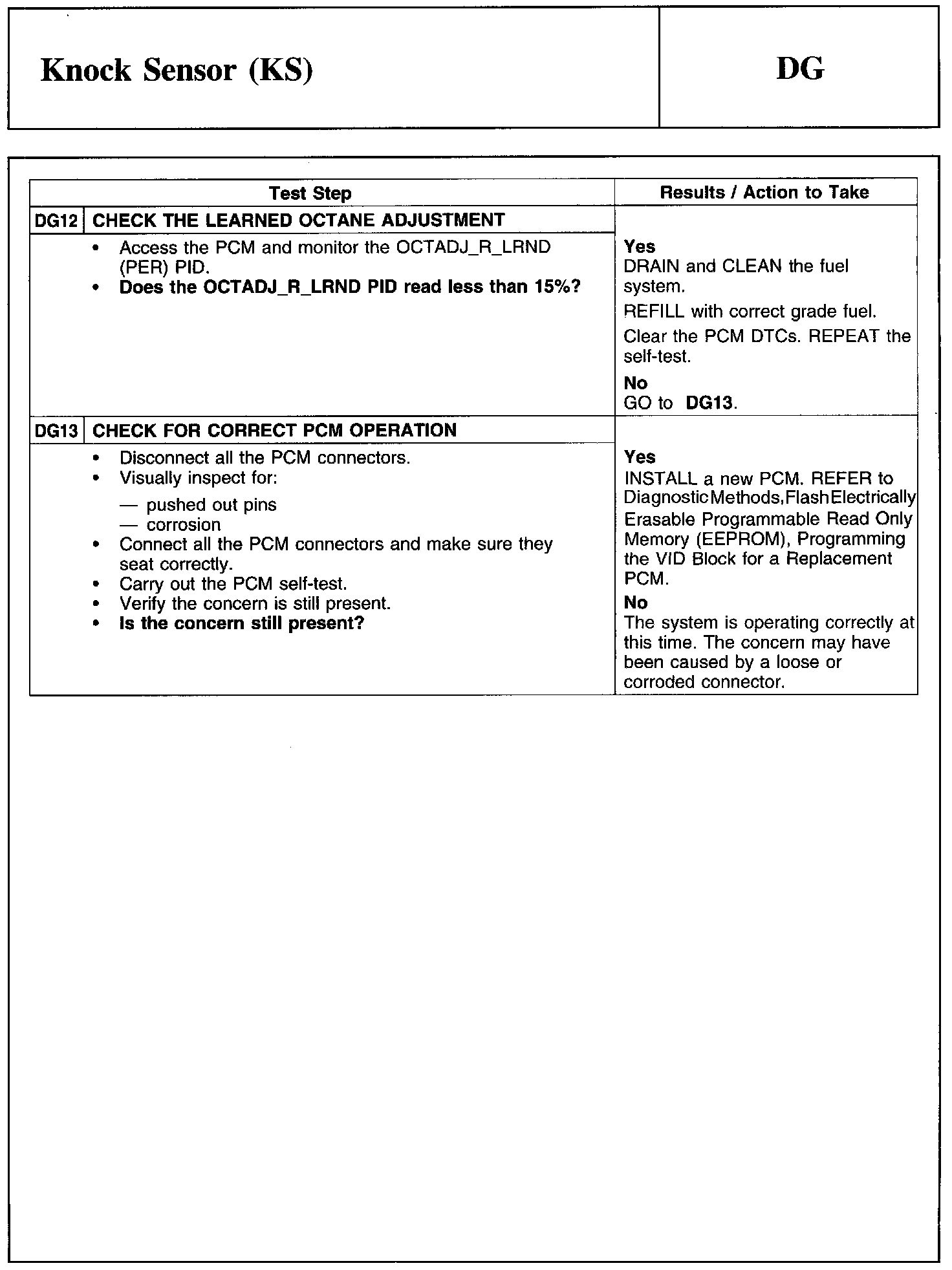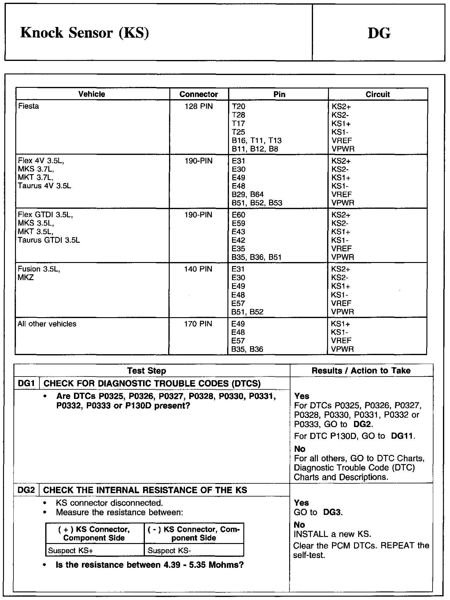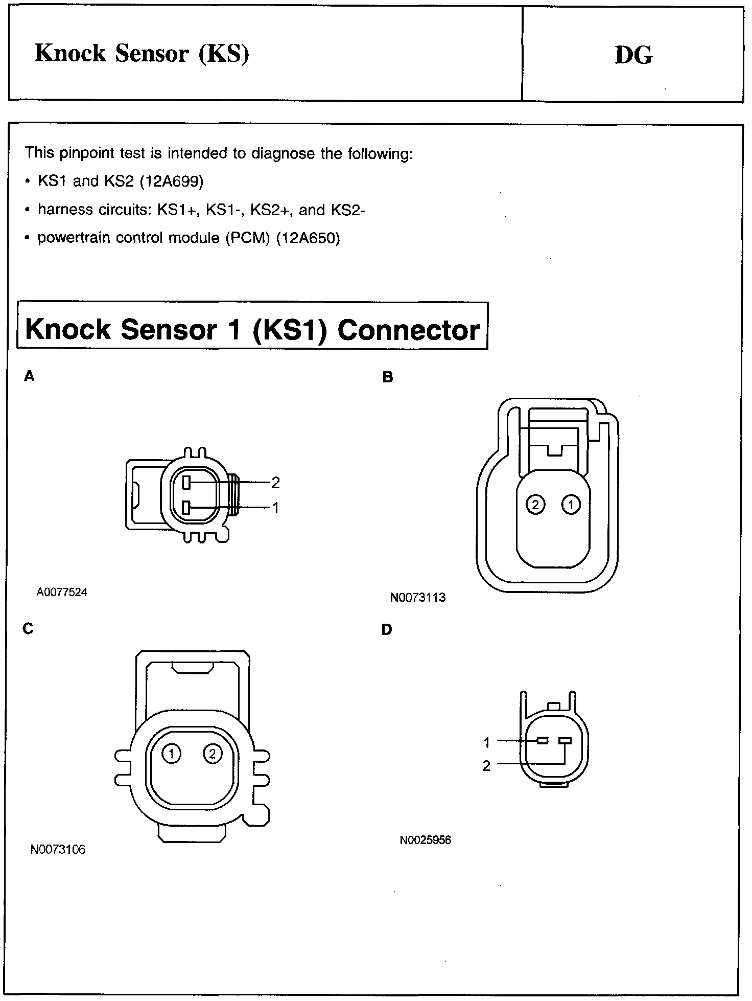 PINPOINT TEST DG: KNOCK SENSOR (KS)