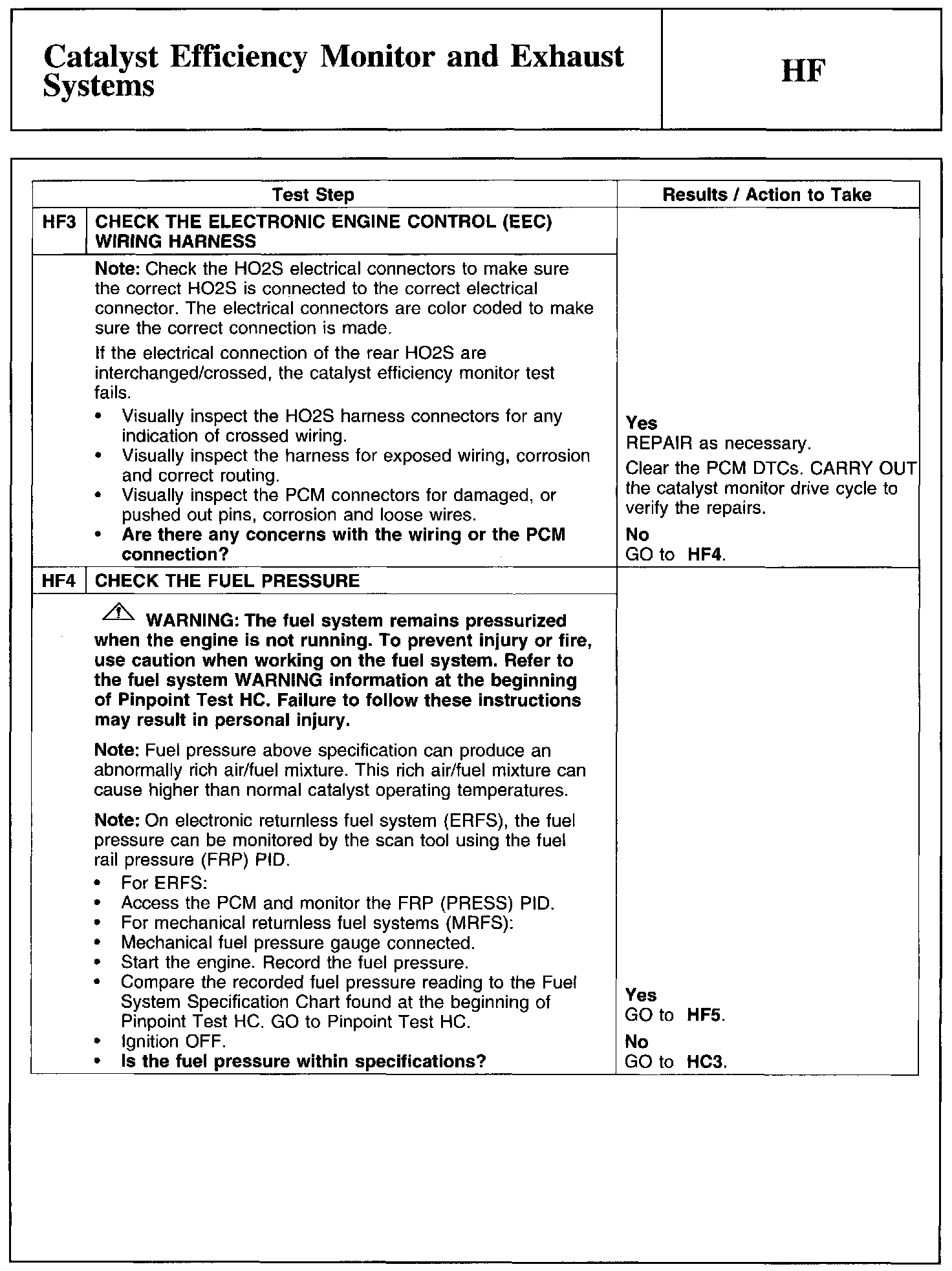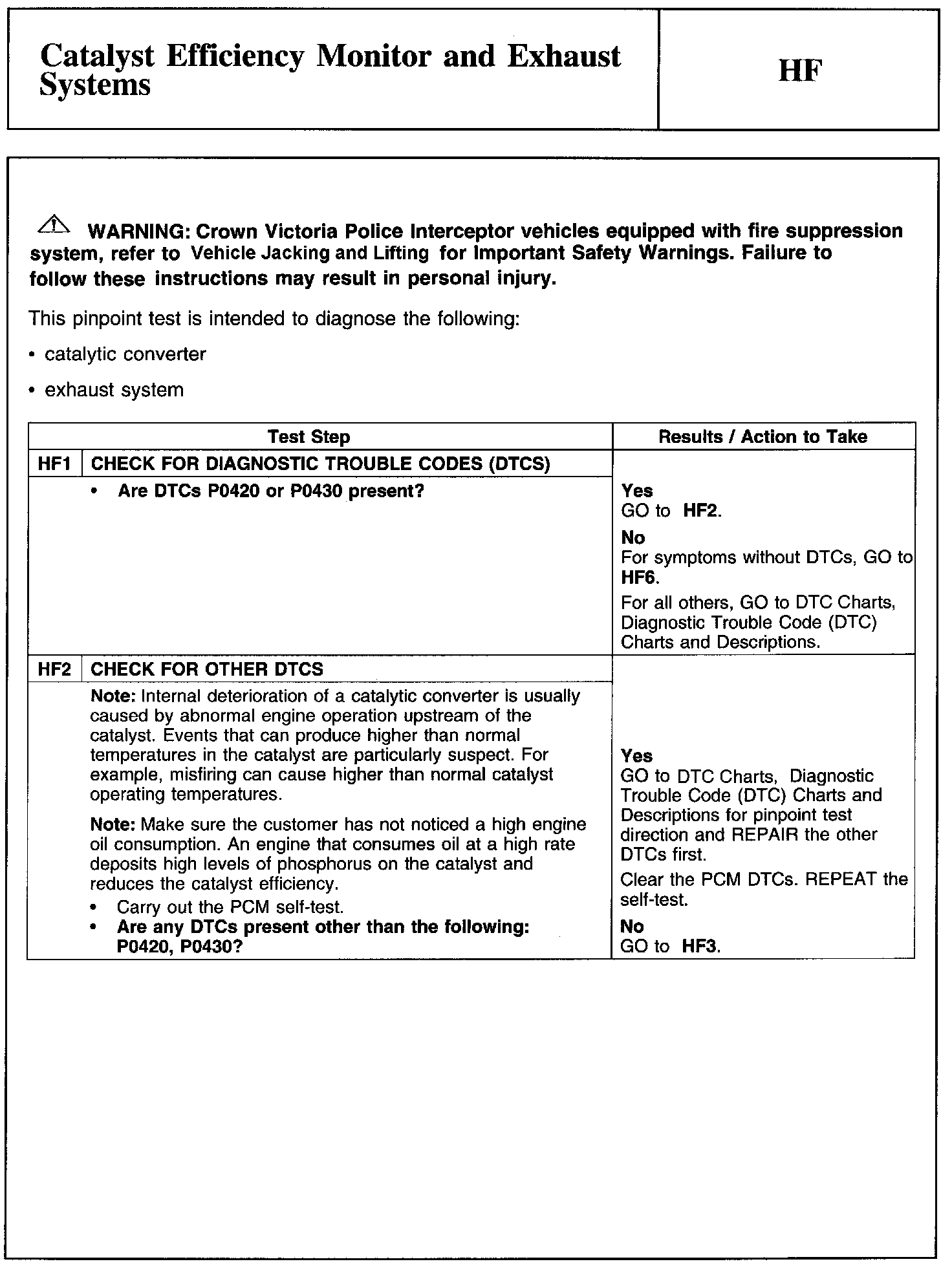 Test HF: Catalyst Efficiency Monitor and Exhaust Systems