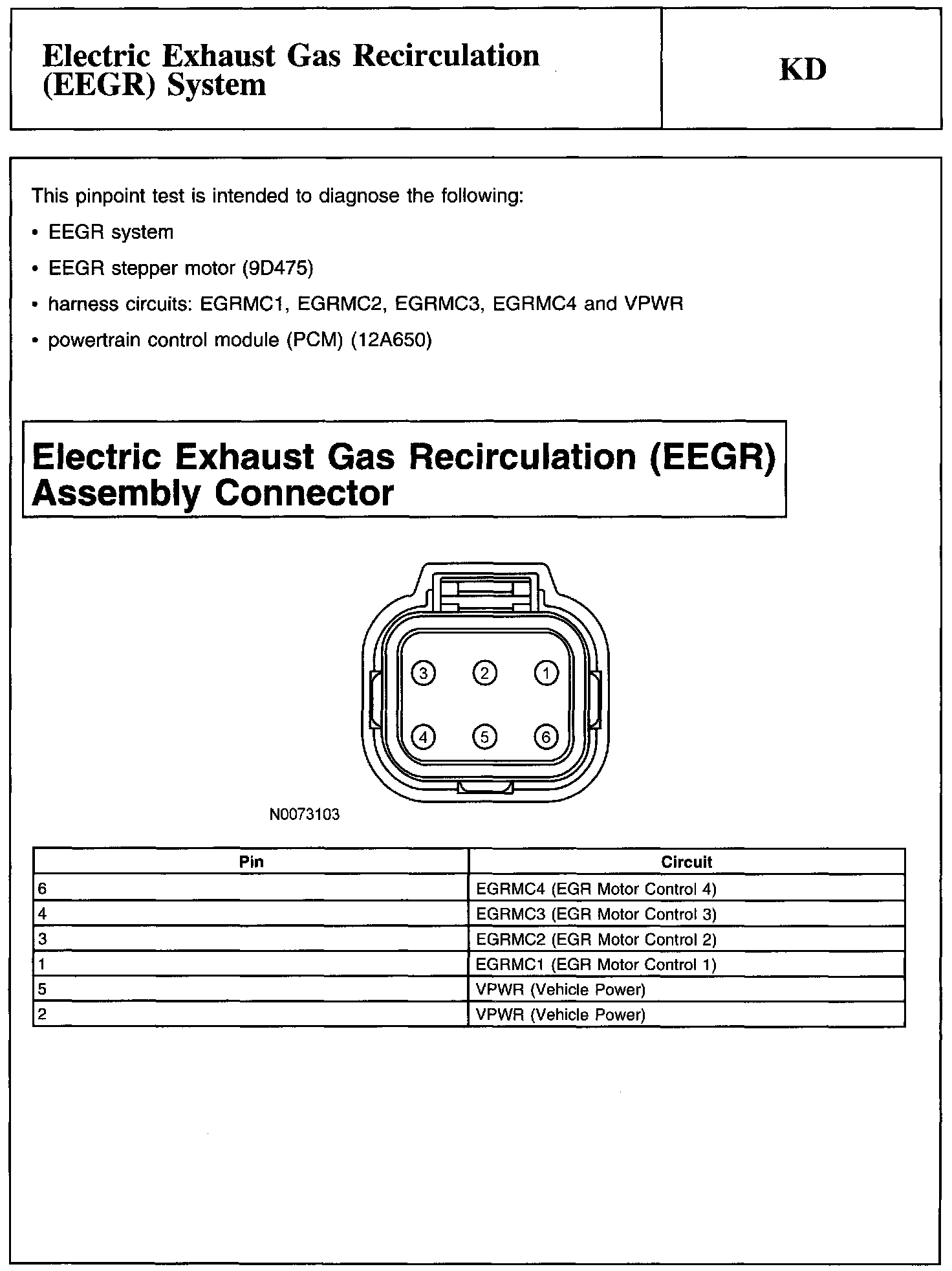 PINPOINT TEST KD: ELECTRIC EXHAUST GAS RECIRCULATION (EEGR) SYSTEMElectric Exhaust Gas Recirculation (EEGR) Assembly Connector:
