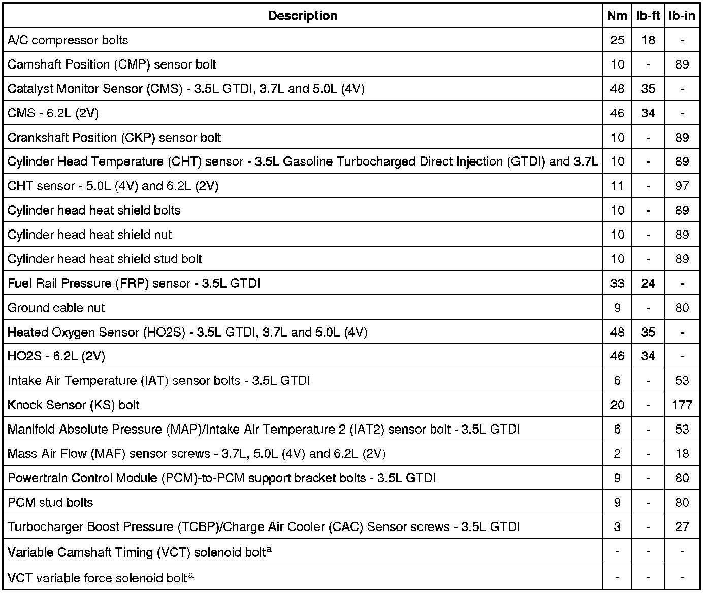Torque Specifications