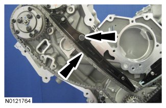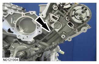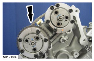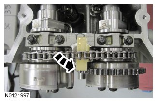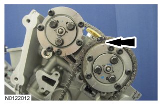 - If the secondary timing chain is not centered over the tensioner, reposition the VCT assemblies until they are fully seated on the camshafts.