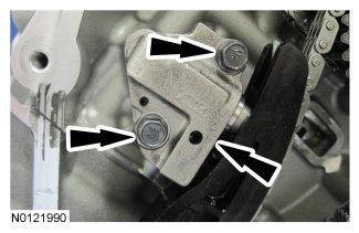 13. Remove the 2 bolts and the LH primary timing chain tensioner.