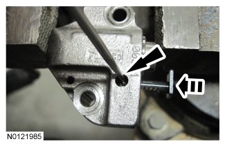 NOTE: Complete the following 3 steps on both the LH and RH primary timing chain tensioners.