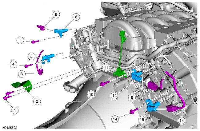 NOTE: The bolts are part of the VCT variable force solenoid and cannot be removed.