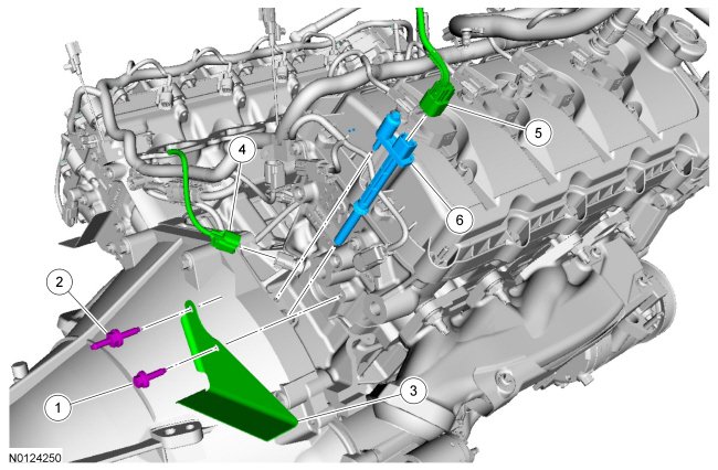 NOTE: Position the VCT variable force solenoid and tighten the bolts in 2 stages.