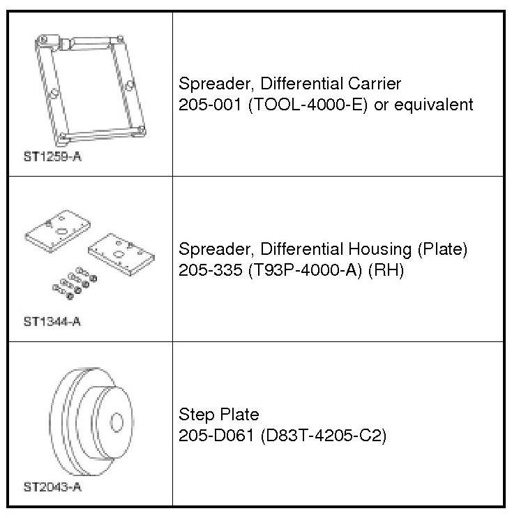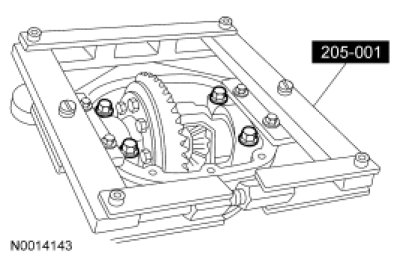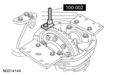 45. NOTE: Hand-tighten the differential bearing cap bolts prior to releasing the Differential Carrier Spreader.