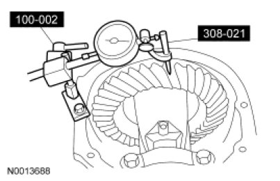 NOTE: Tighten and loosen the differential carrier spreader adapters to normalize the housing adapters prior to taking the final Dial Indicator reading.