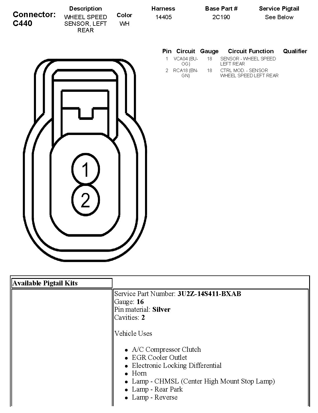 C440 Wheel Speed Sensor, Left Rear