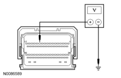 - For 3.5L, measure the voltage between ground and PCM C1551B-2, circuit CH302 (WH/BN), harness side.