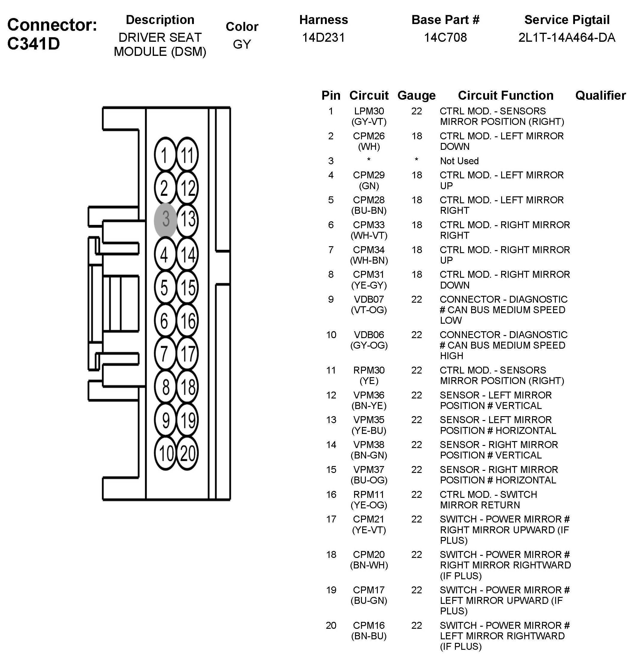 C341D Driver Seat Module (DSM)