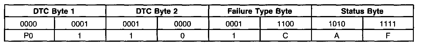 A list of failure type bytes is defined by SAE J2012 but is not described here because the PCM does not use the failure type byte.