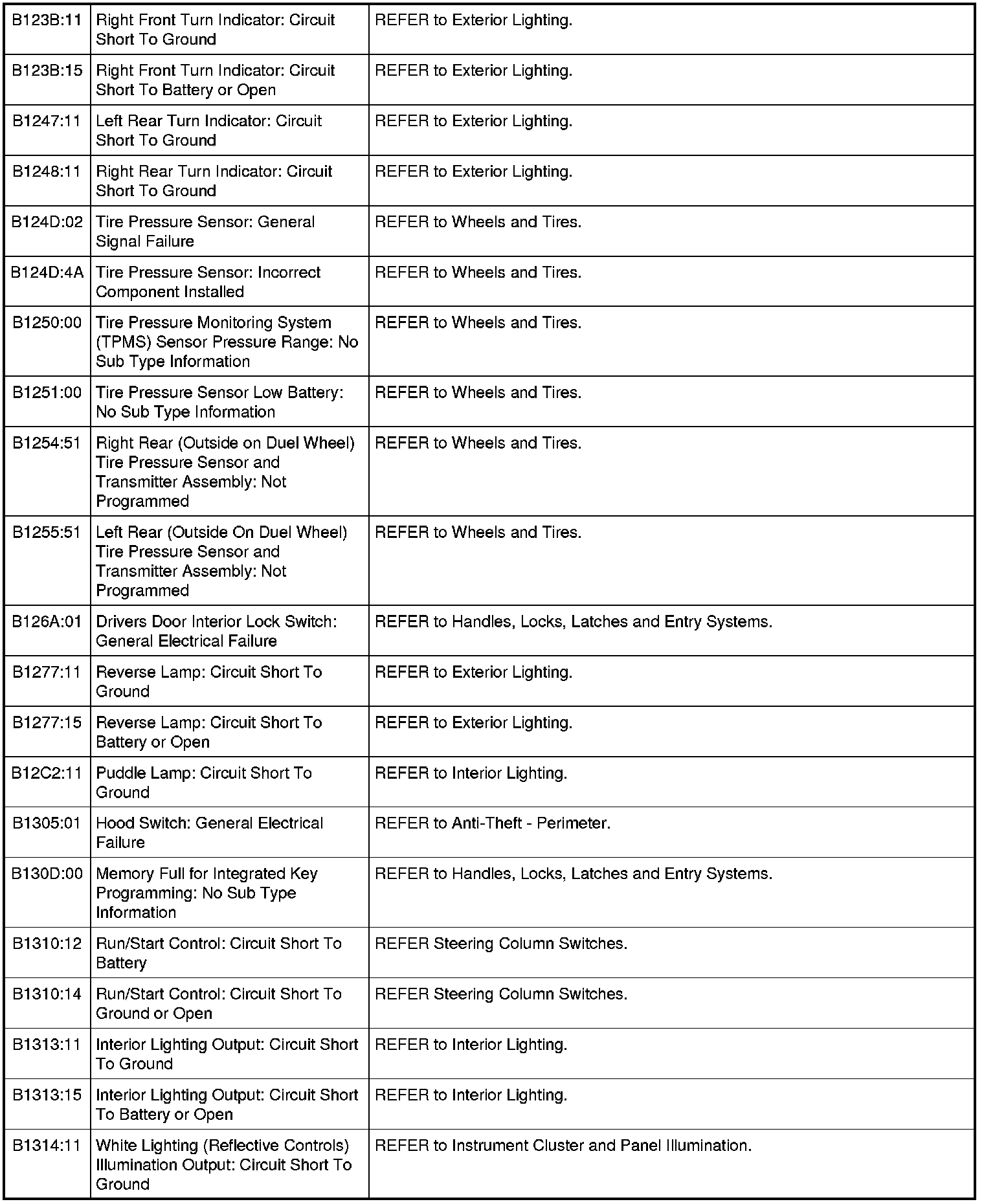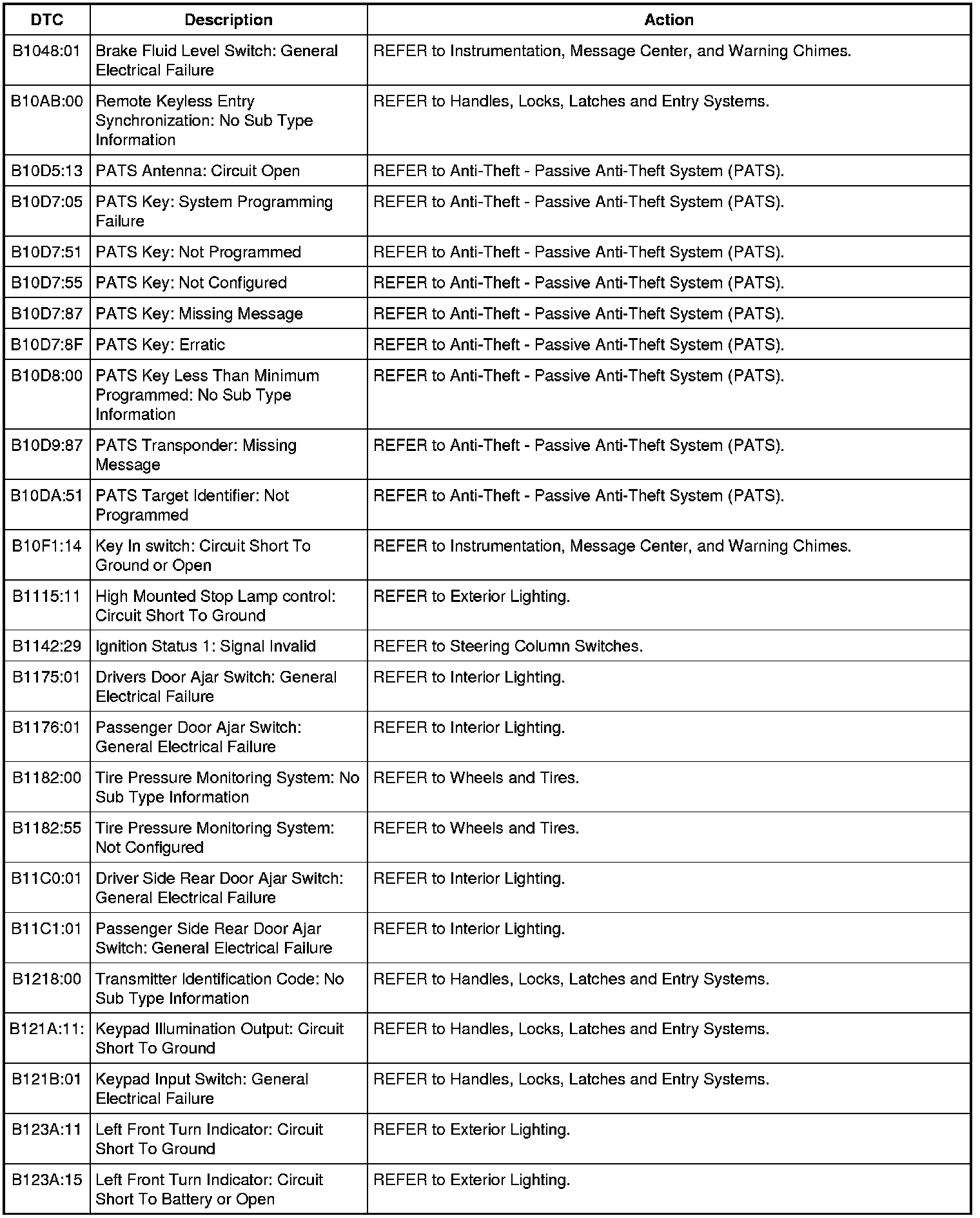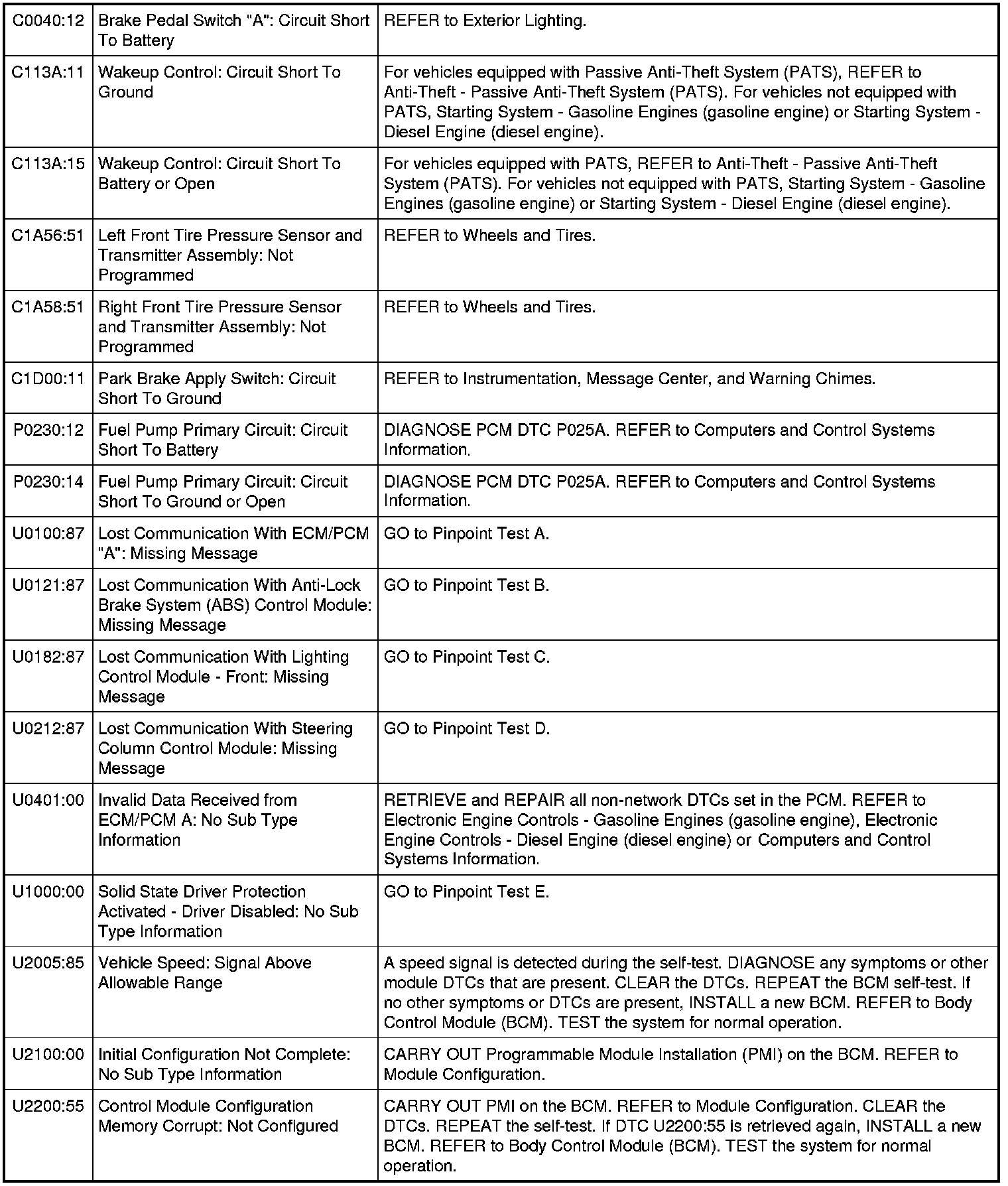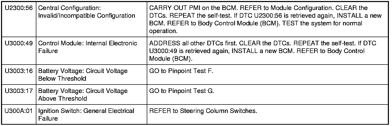 Body Control Module (BCM) DTC Chart