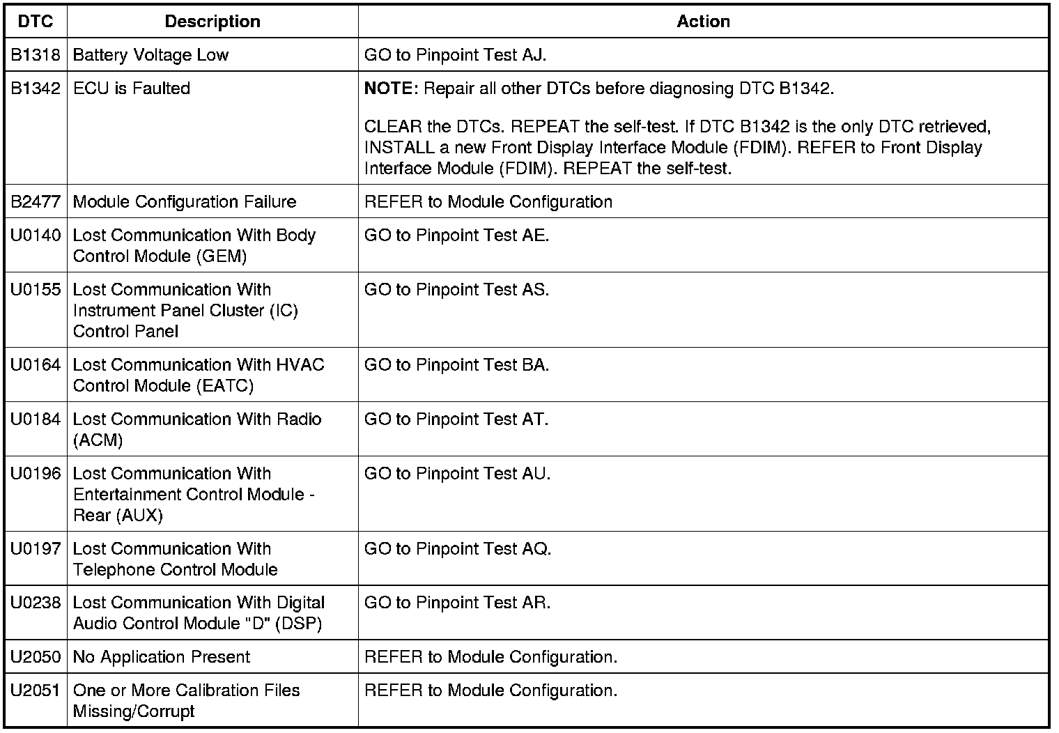 Front Display Interface Module (FDIM) DTC Chart - Without Navigation