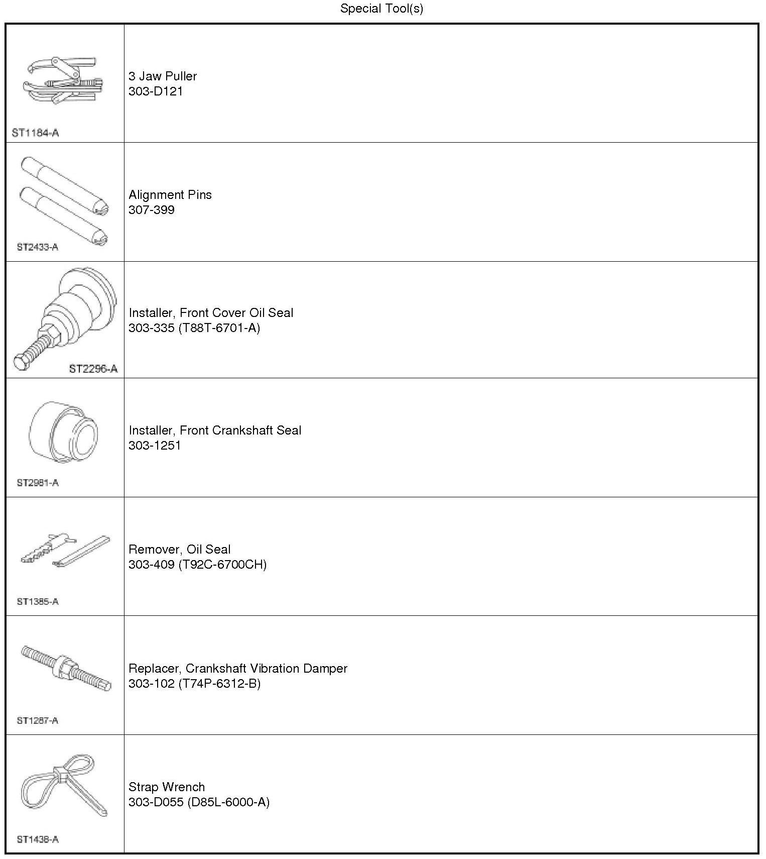 1. Tighten the bolts one turn at a time in a crisscross pattern until the engine front cover-to-cylinder block seal is released.