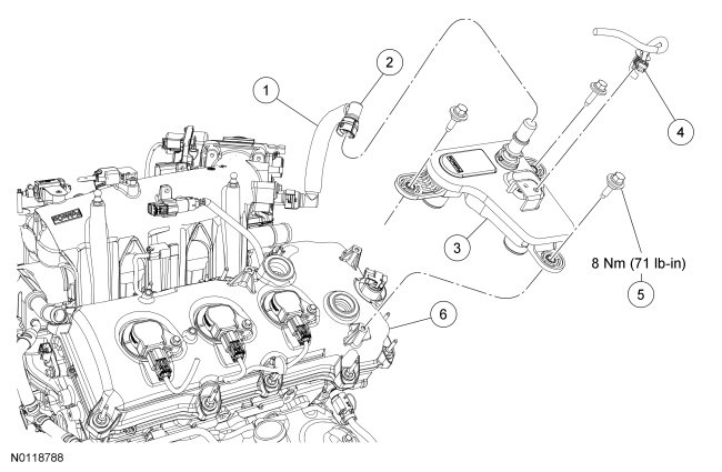 2. Disconnect the crankcase ventilation tube-to-PCV valve quick connect coupling. For additional information, refer to Fuel System - General Information Service and Repair.